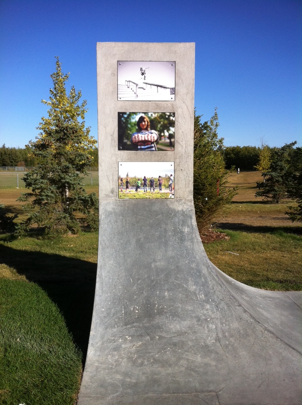 Photos by an emerging artist have been permanently installed on a skateable pillar at Callingwood Skatepark.