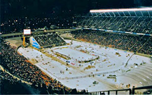 With the new seats, Commonwealth became Canada's largest permanent stadium. As a result it has become a favoured site for large international events such as the 2001 IAAF World Championships in Athletics, the 2002 FIFA Women's U-19 World Cup of Soccer, the 2005 World Masters Games, the 2006 Women's World Rugby Cup, the 2007 FIFA Men's U-20 World Cup of Soccer, and it is often used by the Canada Men's National Soccer Team as a home field. Commonwealth has hosted the Canadian Football League Grey Cup in 1984, 1997 and 2002. It has even been used for outdoor hockey, the 2003 Heritage Classic Hockey Game featuring the Edmonton Oilers and the Montreal Canadiens.
