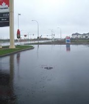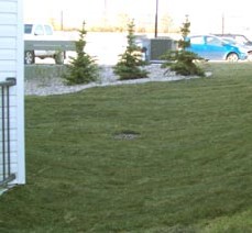 Drainage swales are shallow-sided, sloped channels intended for the conveyance of surface runoff. They are located between or around buildings and are graded to intercept and convey surface runoff to the nearest on-site catch basin, preventing lot-to-lot drainage.