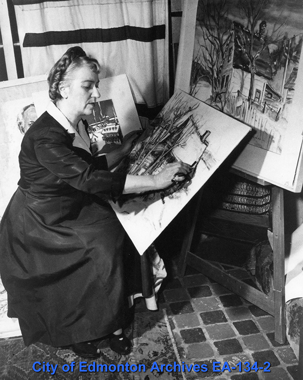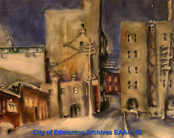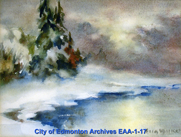 It's interesting that most of Ella's artwork held by the City of Edmonton Archives is of scenes set in the late fall and winter. This is unusual as many artists shy away from this type of imagery, instead choosing the gentler, more idyllic spring and summer seasons.