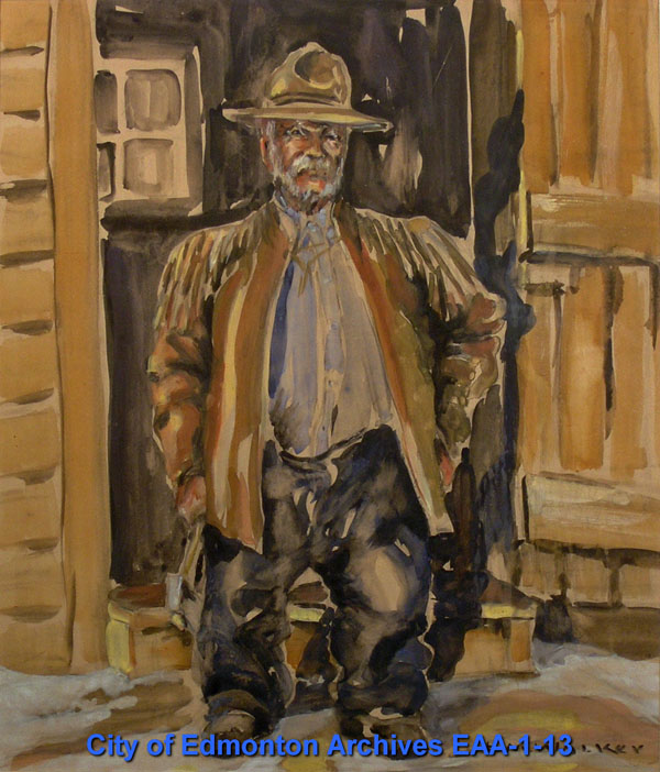 It seems like Ella liked Muchias and his story, in addition to painting him and his house she also wrote articles about him and featured him in her novel Fortress North. In 1983 the City of Edmonton recognized his contribution to our history by naming Muchias Park at 3524-25 Avenue after him.