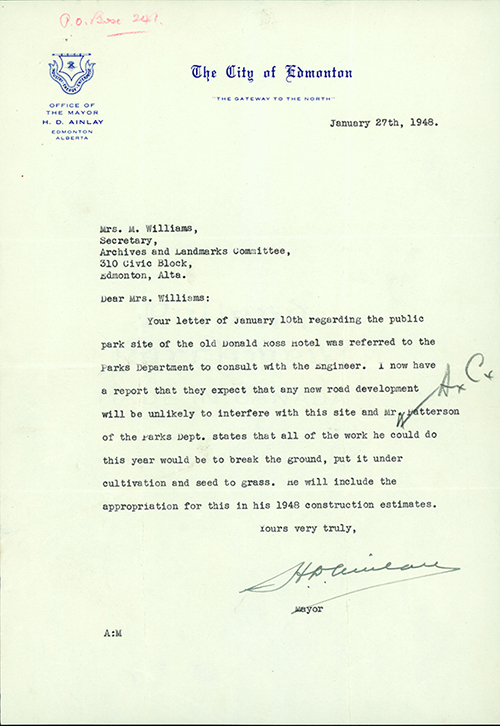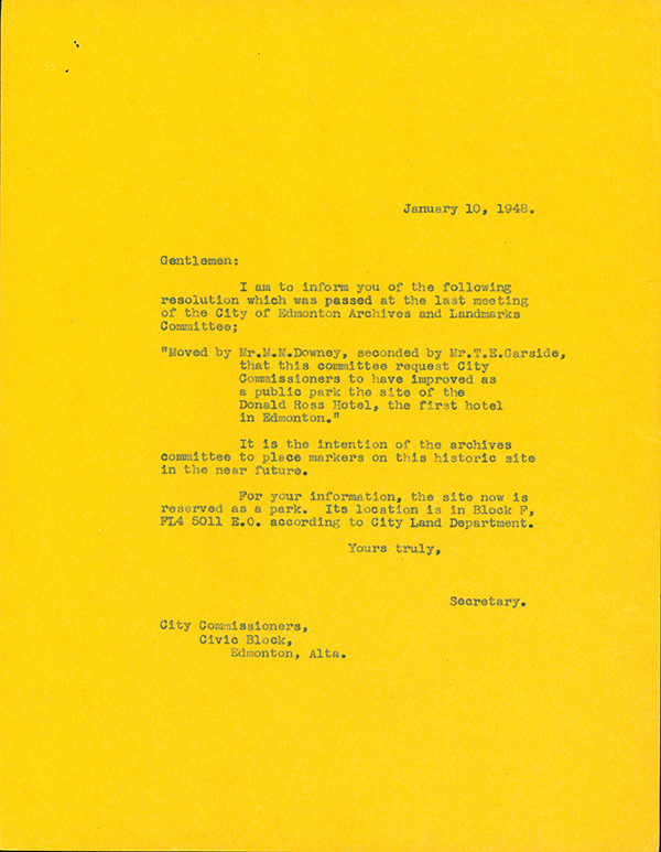 The Committee also made suggestions to Council on how to preserve historic sites, as was the case with the site of Donald Ross Edmonton Hotel.