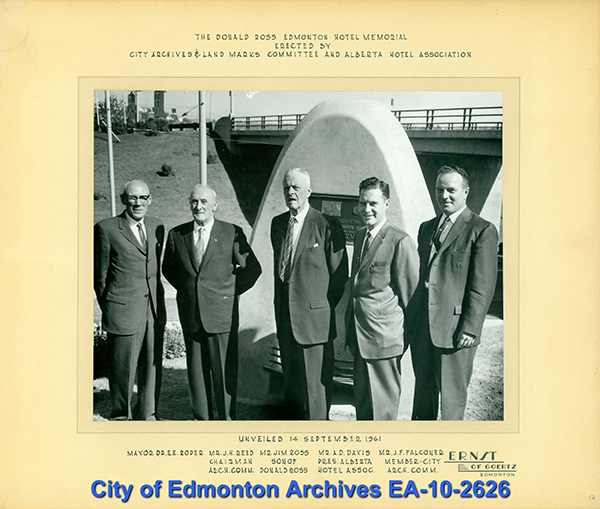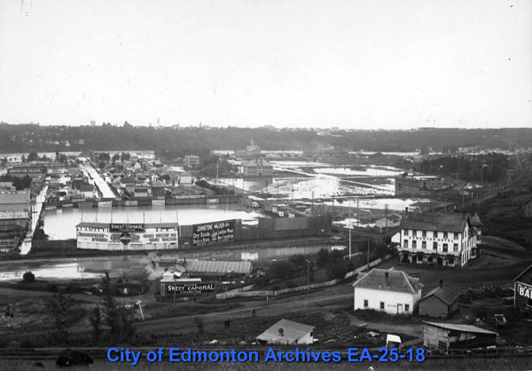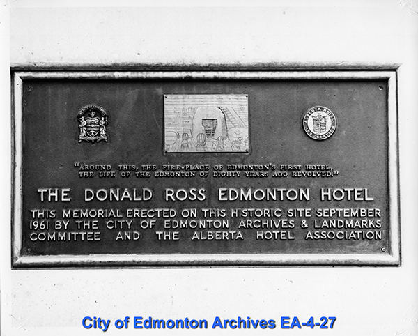 Donald Ross arrived in Edmonton in 1872 and purchased 70 acres of land around what is now Rossdale, where he built one of the community's first houses. Ross rented the second floor of his house to newly arrived settlers, creating Edmonton's first hotel. As more people came to Edmonton, Ross needed more space and expanded the home three times. When he died in 1915 the Edmonton Hotel was turned into a rooming house, but burned down in 1925.