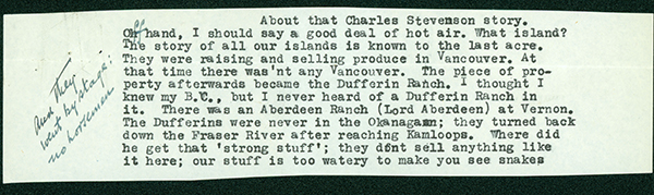 Excerpt from Major Matthews’ letter in Charles Stevenson clipping file. -