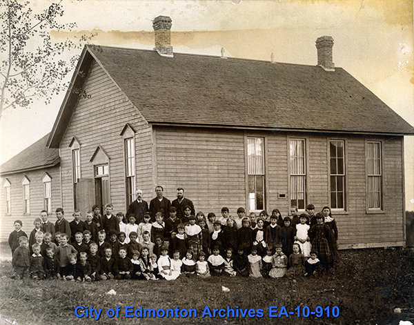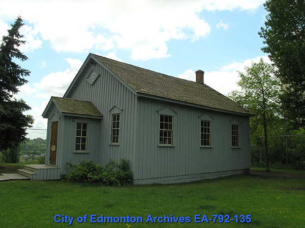 Ella May Walker identified the 1881 School House as an important historical building, and it appears on her map of Edmonton's Historic Landmarks. Built in 1881, the building was Edmonton's first public school. It was used until 1904, when MacKay Avenue School was built. Eventually the small school was sold and moved to Rossdale, where it became a private residence. Although some changes were made, Ella's interest kept the building on the Committee's radar. In 1979 it was purchased by the City of Edmonton and donated to the Edmonton Public School Board (EPSB). It was moved to its current location very near its original site and restored as part of the EPSB Centennial in 1982.