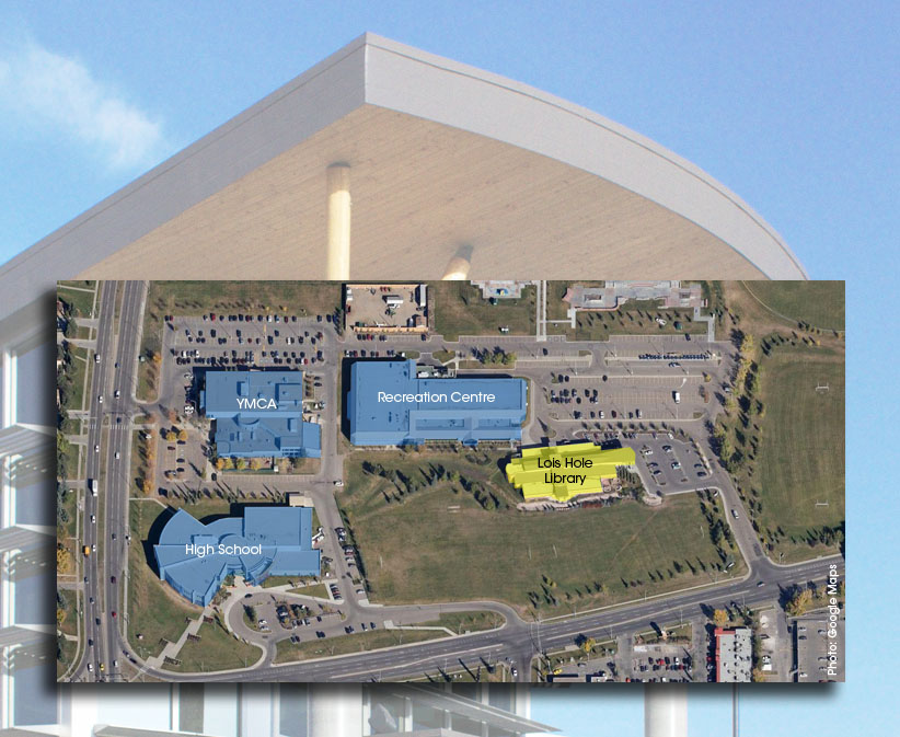 Lois Hole Library's alternate transportation strategies include requiring the contractor to limit the size of the area disturbed by construction activities, designing an extensive native and drought resistant landscape that encourages biodiversity and reducing the size of the parking so as to leave more area available for landscaping.