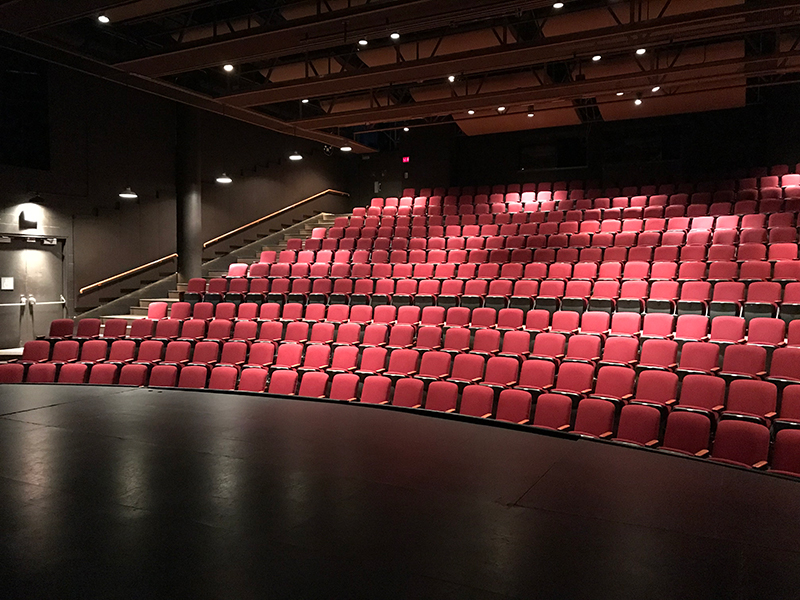 The performance theatre is a 350-seat proscenium-arch theatre with an 8-foot apron in front of the main curtain. It can be used for a variety of performance and presentation styles.