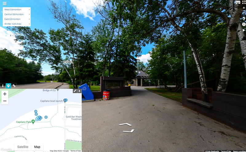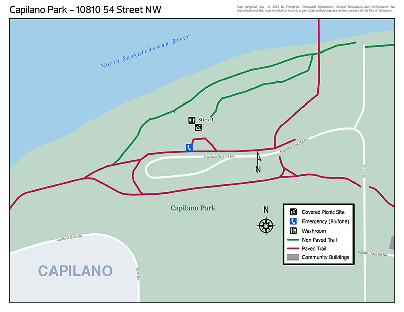 Capilano Park is located on the south side of the river at the end of 50 Street. Its year-round amenities make it an ideal destination for users including snowshoeing and cross-country ski trails in the winter and a dock along with a hand and boat launch in the summer. There is also a designate off-leash trail and a picnic site that can be booked in advance.