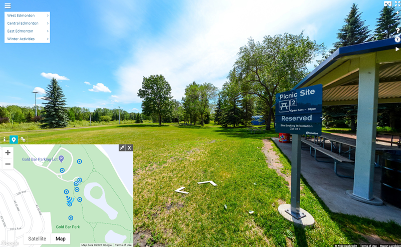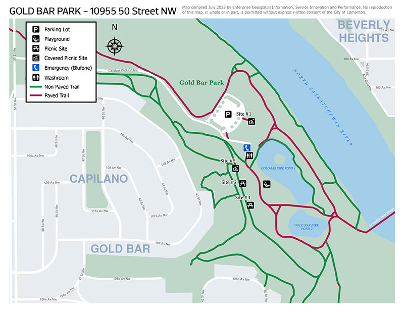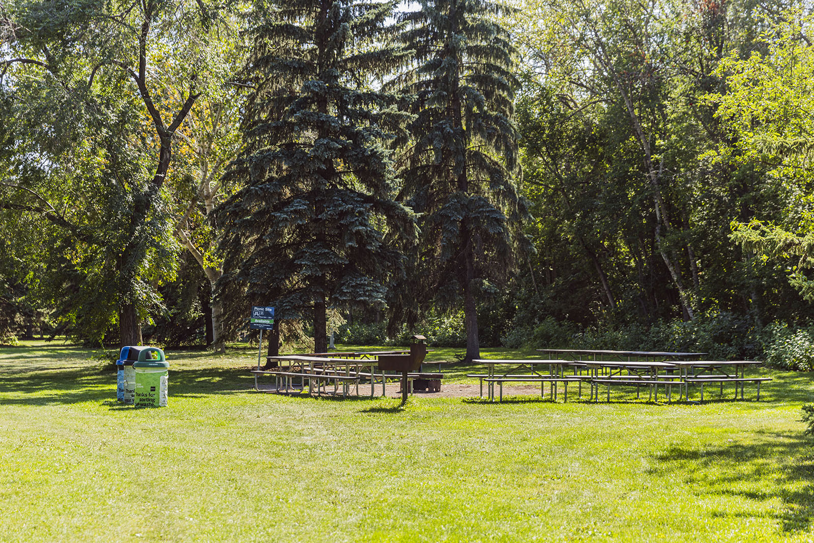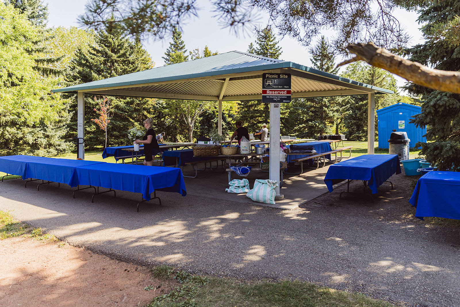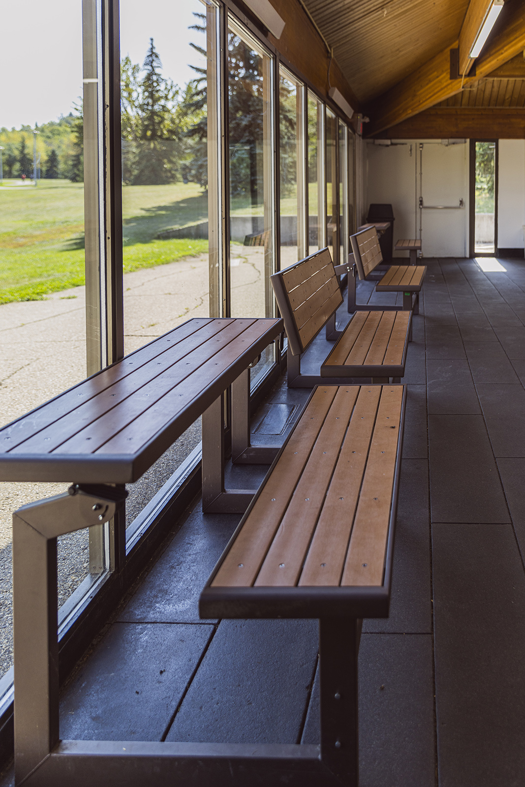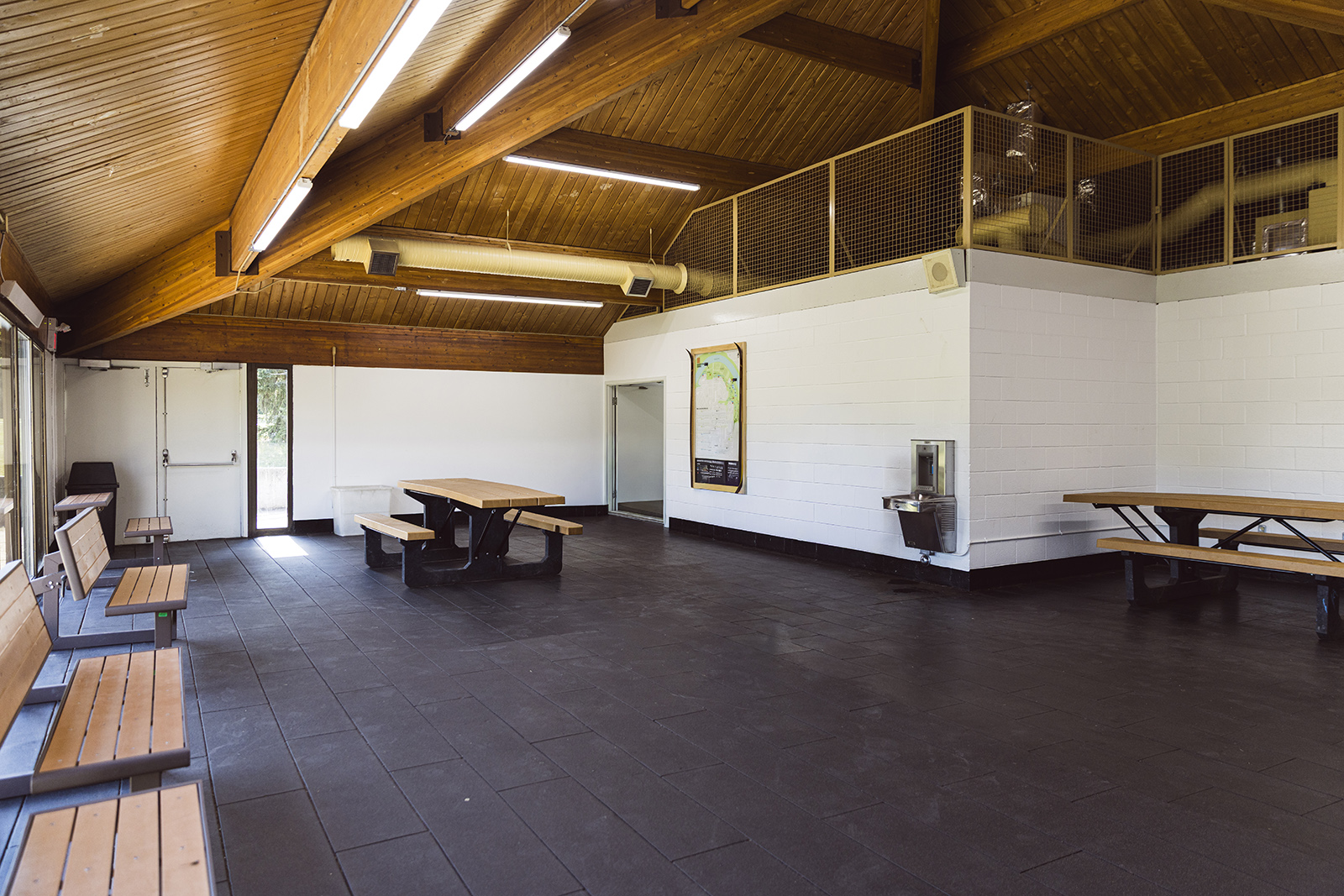The Gold Bar Park Pavilion serves as a year-round centre for park visitors. Amenities include accessible washrooms, comfortable seating, and a water fountain with a bottle refill station.