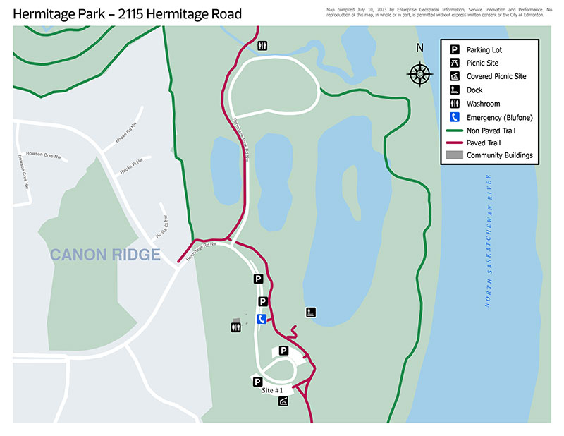 Hermitage Park is located in the north-east end of the city. Filled with natural trails, a large off-leash dog area and picnic sites, this park provides users a variety of opportunities to enjoy the outdoors. Fishing and paddling activities are also available.