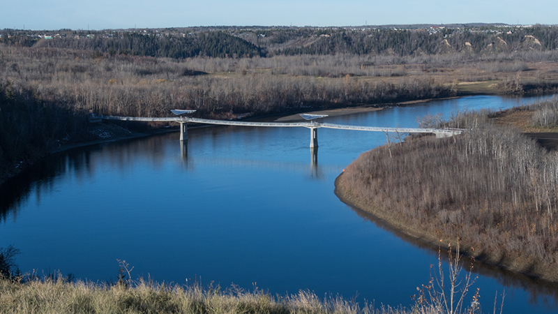 The City of Edmonton considered a number of options for the footbridge. After careful evaluation, a stressed ribbon design was selected because:
