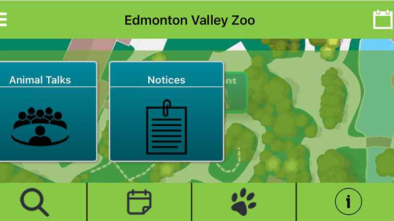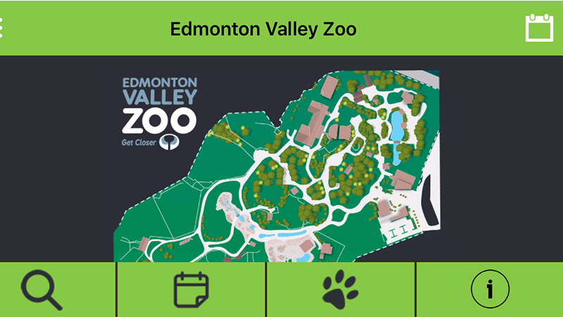 The Edmonton Valley Zoo app is an interactive GPS-enabled map of the zoo which will help guests navigate the animal exhibits, amenities, events, and daily animal talk schedules.