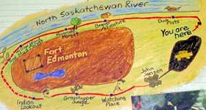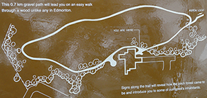 Many local tree and shrub species can be found along this trail that loops around Fort Edmonton Park. The hillside section of this multi-use and paved trail starts at the Nature Centre and leads to the Fort Edmonton footbridge. The riverside section parallels the bank of the North Saskatchewan River. Some steep sections may be a challenge for those with limited mobility.