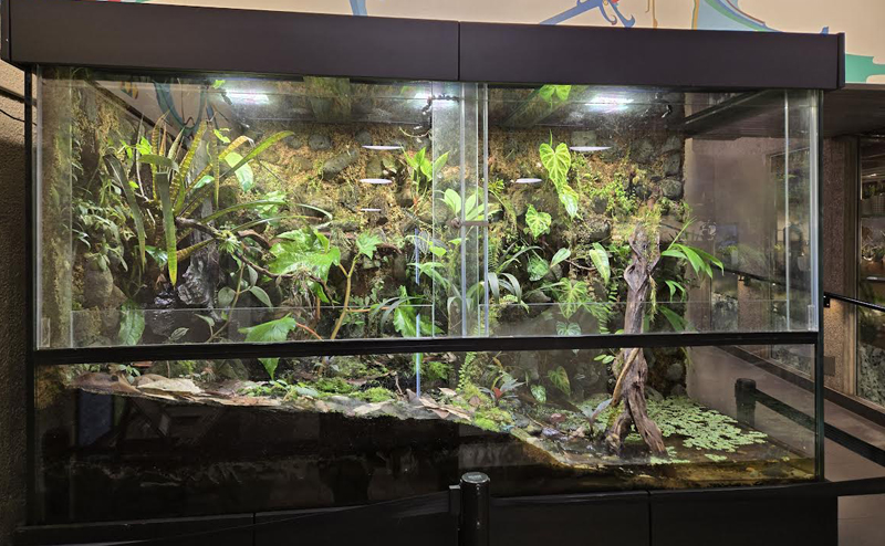 Inside, you can relax in the cozy centre court area with a fireplace and a children's imagination station open daily for drop-in visits. Count the frogs in the vivariums and unwind in lounge seating surrounded by plants and beautiful artwork.