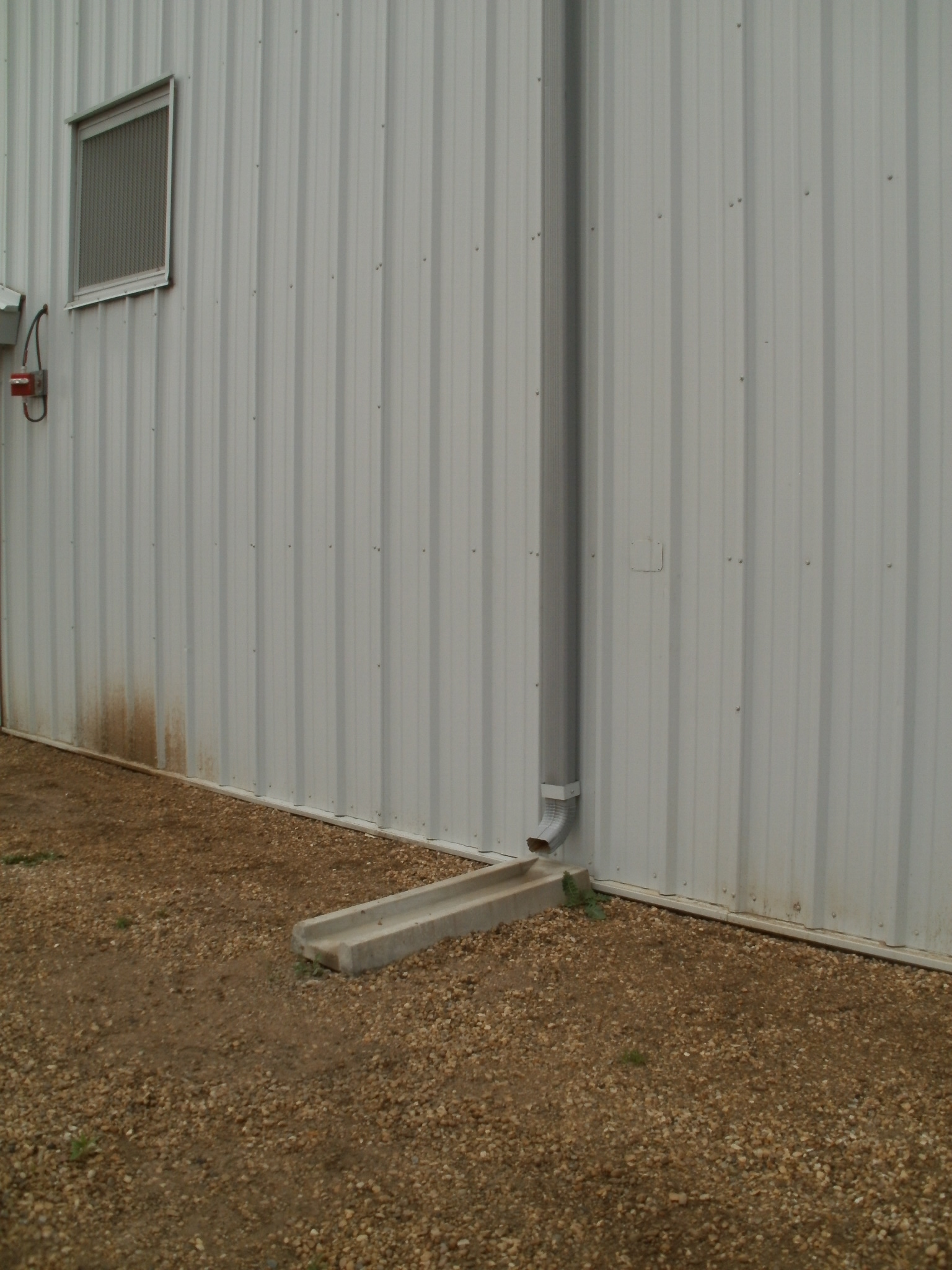 - underneath all downspouts draining onto soft landscaping (sod, topsoil, and/or gravel)