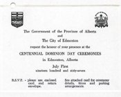 This invitation and program are from the Centennial Day ceremony held jointly by the Province and City on the south lawn of the Alberta Legislature. [A80-88]