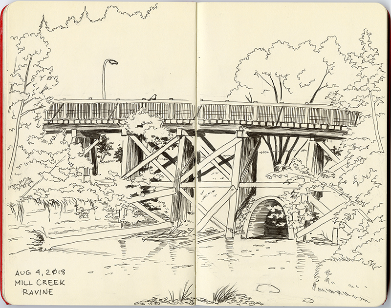 Encompassing the non-residential neighbourhoods of Mill Creek Ravine North and South, the ravine winds from Connors Road to Argyll Road. It leads down to Mill Creek, named after a flour mill established by Métis businessperson William Bird in 1878. Originally this area was integral to industry, including the mill, a railway, and meatpacking plants before being reclaimed as a green space. The park’s outdoor swimming pool, built in the mid-1950s, is still a popular recreational spot in the summer time.