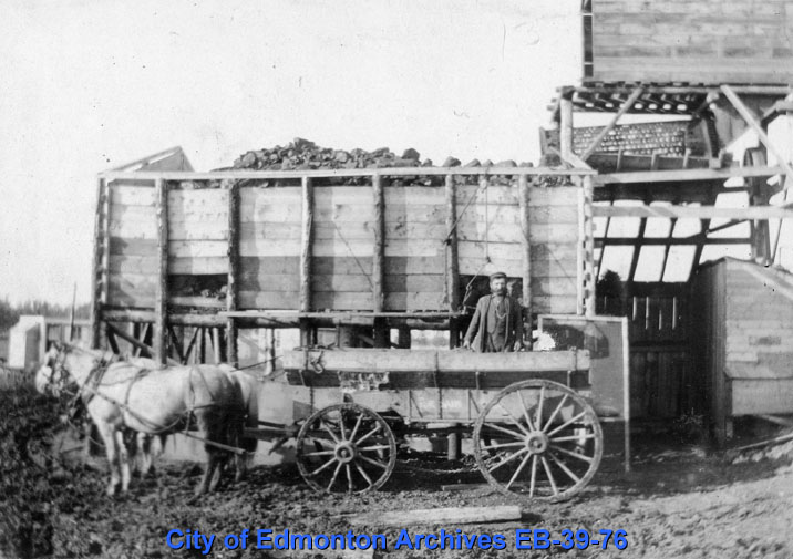 The original mine entrance was a horizontal shaft, called a drift, located on the riverbank just south of the present-day Clover Bar Bridge. In 1900 the mine had a capacity of ten tons of coal daily. Over the next two decades many improvements were made. Around 1910, a new shaft was dug and a spur track was laid to connect the Humberstone Mine to the Grand Trunk Pacific Railroad. This track ended at the shaft and made loading and shipping the coal much easier. The old drift entrance from 1900 was fitted with a fan house to help ventilate the mine. Five smaller fans also operated, keeping the mine dry as well. Electric light was available at the bottom of the main mine shaft, but miners’ lamps were required everywhere else.
