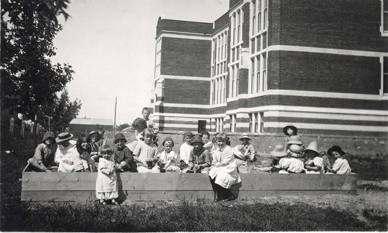 “We had some excitement one day when Jack Marshall and another boy (I can’t remember who it was), found a little garter snake, at lunch time I think and when the teacher, who was a Miss Harrison, an Englishwoman, was out of the room, they put the snake into the top drawer of her desk; they thought they had better hide the strap, which they did, I think in the old kitchen. What happened when poor Miss Harrison found the snake and the missing strap, maybe someone else can tell, for I do not remember”