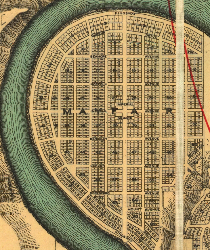 It is interesting to note that the names at this time appeared to be quite fluid. This map shows Mayfair in 1912 (the same year as EAM-86), but with entirely different street names!