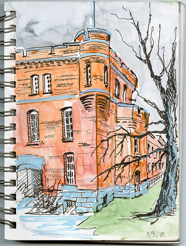 The exterior is faced with Tyndall stone that incorporates petroglyph designs from the Writing-on-Stone Provincial Park site. The interior walls are marble and the floors black granite; all Canadian stone.