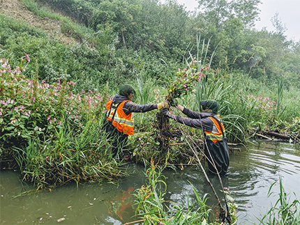 The Natural Area Operations team has a crew dedicated to removing Regulated Weeds by mechanical means only. When removing weeds in natural areas, the team first considers the environmental sensitivity of an area, the population dynamics of the weed species present, and the distribution of the species. Areas are prioritized based on the species present and their stage of growth.