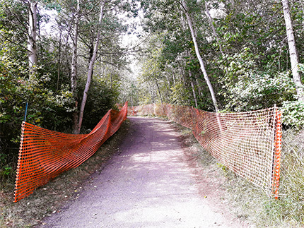Our trail crews use the trail system daily and are constantly monitoring them for any safety concerns. If you see a fallen tree blocking a maintained trail, any tripping hazards along a trail, low overhanging branches, or an overflowing garbage container, please contact 311.