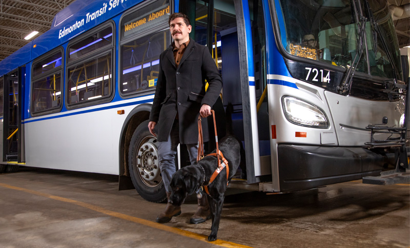 Dogs trained to aid or to guide persons with visual, hearing or other disabilities are permitted in City of Edmonton facilities.