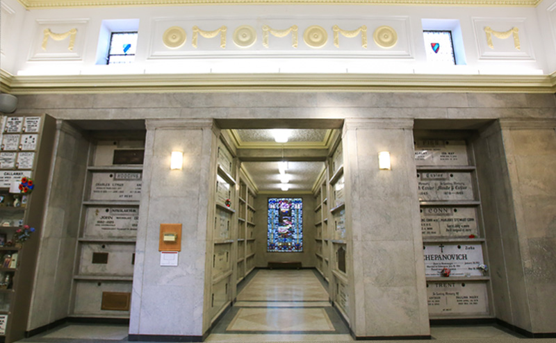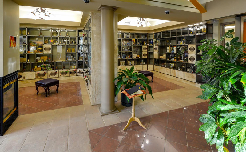 The first floor was constructed in 2005 and features a harmonious blend of glass and marble-fronted niches in an elegant atmosphere. The second floor was completed in 2020 and showcases hundreds of niches that elegantly embrace the vaulted ceilings and enjoy the natural light streaming through windows and skylights. Each individually-lit glass-fronted niche serves as a stunning memorial.