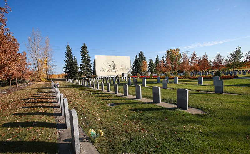 The cemetery park contains a distinctly designed cultural area, which reflects the diversity of Edmonton and the surrounding communities. Additionally, the Wall of Remembrance is a poignant tribute to our military veterans. It honours their sacrifices with a place for reflection and remembrance. The cemetery is also home to the City’s first Green Burial parkland. This premier feature emphasizes a commitment to offering an environmentally sustainable option in honouring loved ones.