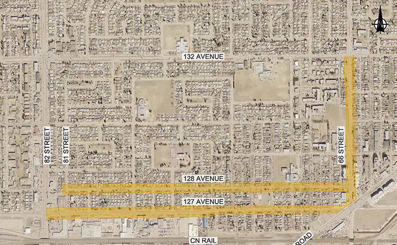 Construction includes building new pedestrian curb ramps at every intersection along 127 Avenue and 128 Avenue.