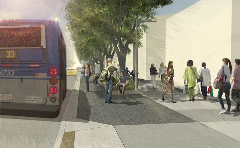 - Wider, upgraded sidewalks