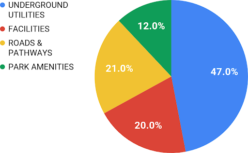 For open space trees (Source: Urbfor Tree Preservation Plan, page 19), of the 2,483 open space trees in the park, 741 trees are located within the Tree Protection Zones. These trees are located within 5 metres of work being conducted or within 5 metres of the boulevards. Of those 741 trees within the Tree Protection Zones, 544 trees will be protected (saved). These have fencing or other protective measures as outlined in the Tree Preservation Plan. Of the remaining open space trees, we estimate 112 may need to be removed due to deep utility work. We emphasize “may” as some removals may be mitigated. Those decisions cannot be made until the work is ongoing, so this 112 could be lower once work progresses.