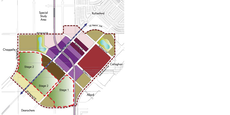 The entirety of Stage 2A (west of 119A Street) was expected to be completed by the end of 2022, but inclement weather, pipeline crossing agreements and wet land approvals from the province delayed some of that work until 2023. Asphalt road access to 32 Avenue, some concrete work, tree installation and minor seeding is outstanding and is expected to be completed by June 2023, followed by one year of maintenance.
