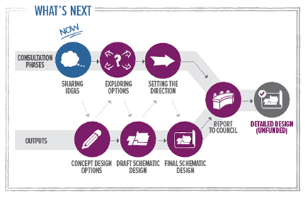 The decision to move forward with schematic design meant the City needed to check in with the public and interested parties to verify the major activities identified for the facility and park and whether the program needed to be revised. This assessment was completed from April - July 2015 as part of the Sharing Ideas consultation.