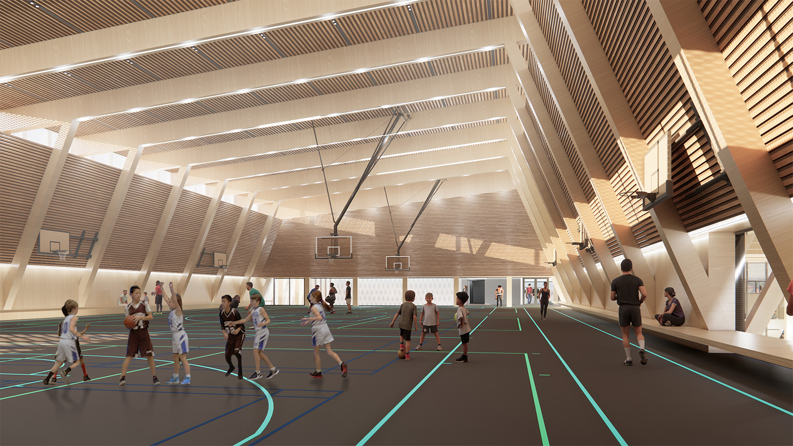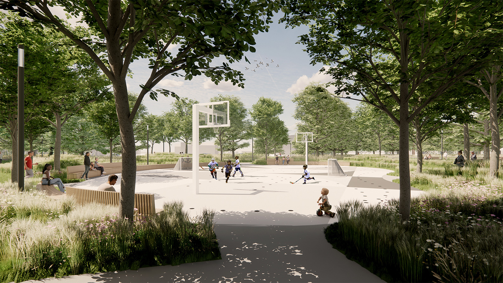 - Multi-purpose court to support basketball, ball/roller hockey, toddler cycling and other uses
