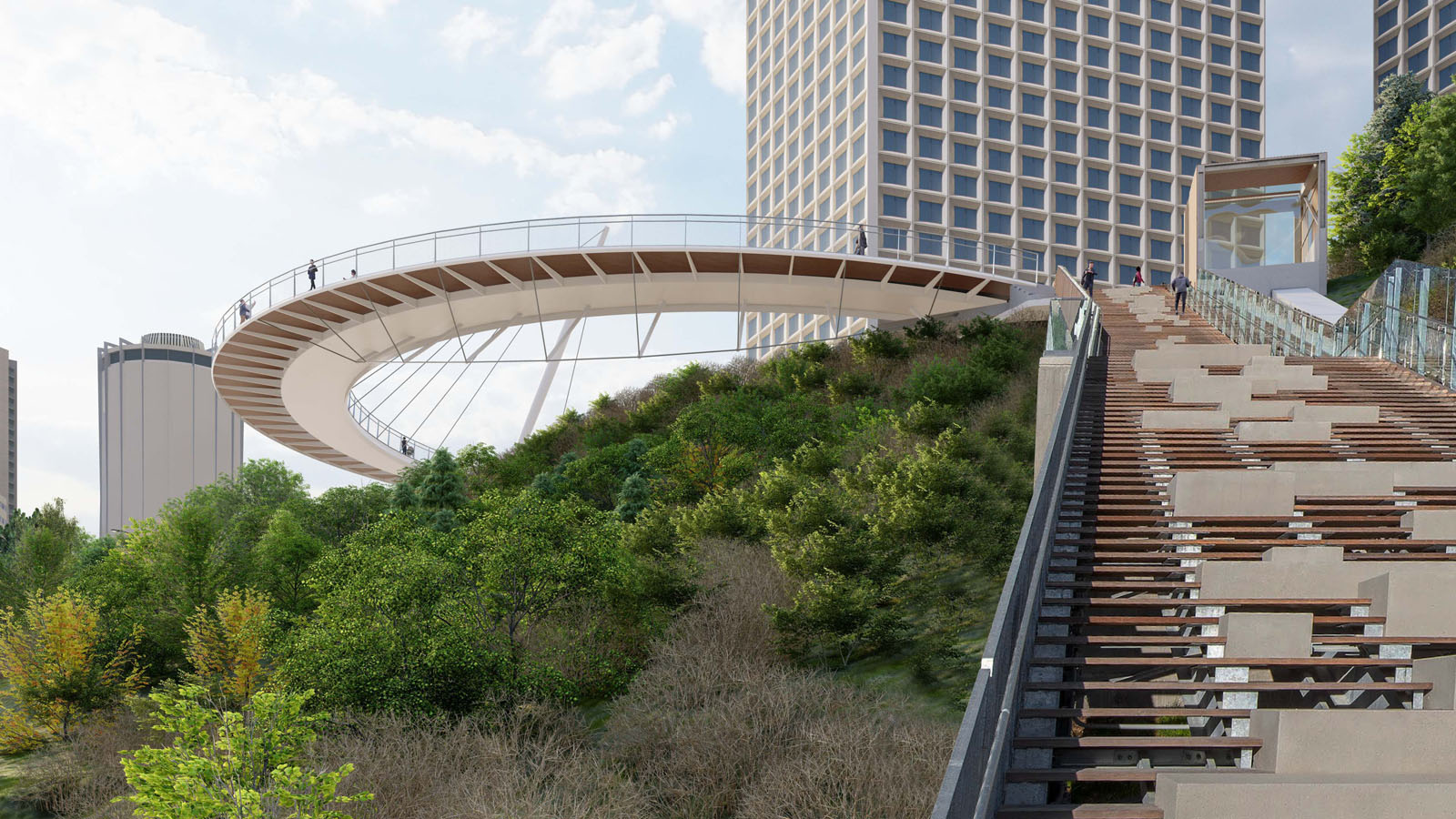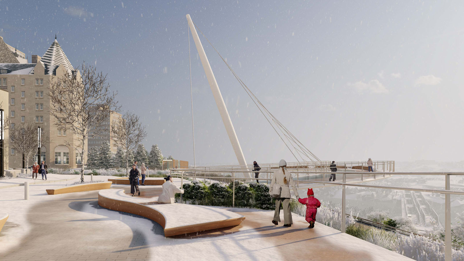 The preliminary design of the suspended bridge was completed in the spring of 2023. During the preliminary design phase structural feasibility, architectural details and landscape elements of the bridge were considered, as well as construction phasing and delivery.