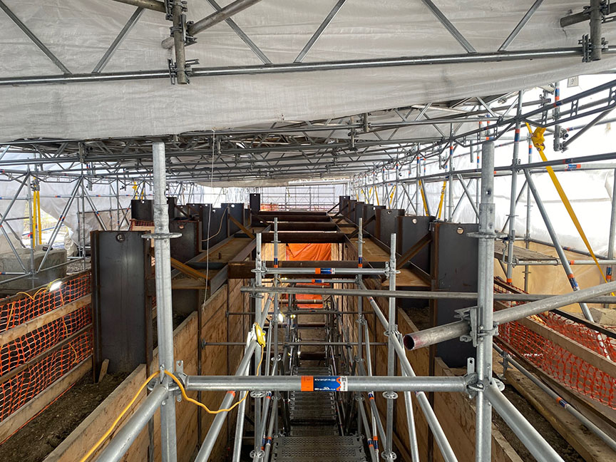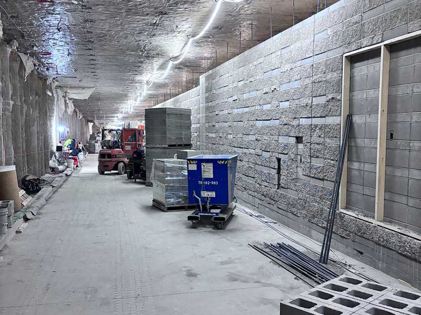 Through the summer construction season, Ledcor continued to make progress on the pedway project. This included adding mechanical, electrical and architectural elements to the tunnel section north of 103A Avenue and completing all excavation and concrete slab pours in the future “pop-up” located near the CN Tower bus loop.