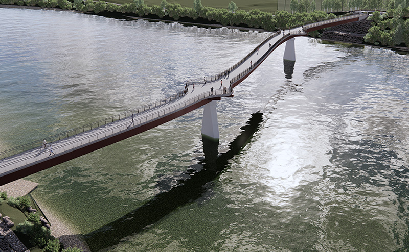 This footbridge will link Edmonton to Strathcona County and connect to the trail systems within the North Saskatchewan River Valley.