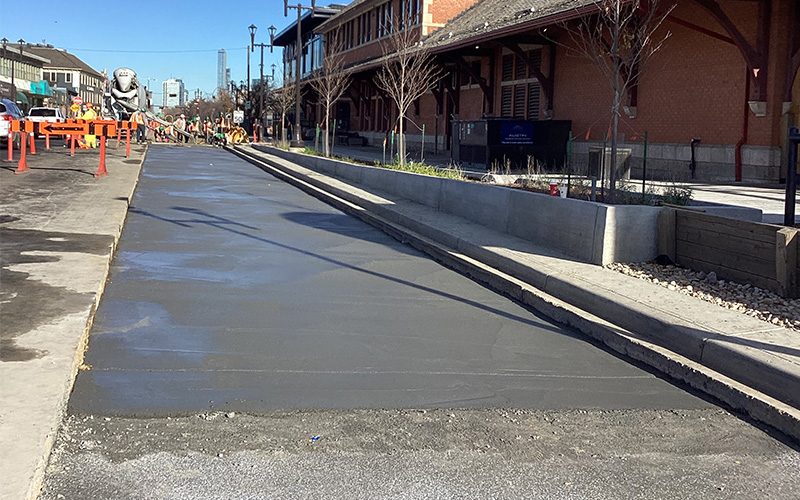 The reconstruction phase included the removal and rebuilding of both the roadway and sidewalks. Changes also incorporated improved traffic signalling, along with new landscaping elements like trees and streetlights.