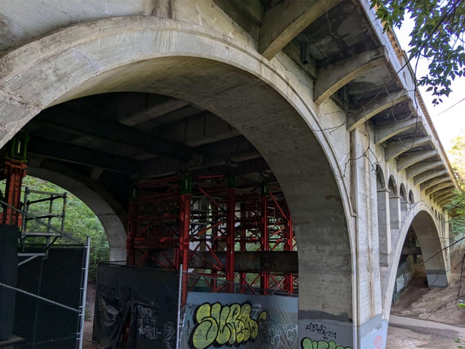 - The pathway underneath the bridge is closed for pedestrian and cyclist safety. Please use alternative trail routes.