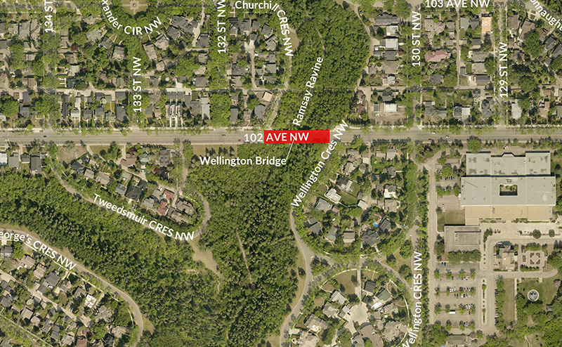 The Wellington Bridge, located on 102 Avenue between 130 Street and 132 Street, is being replaced.