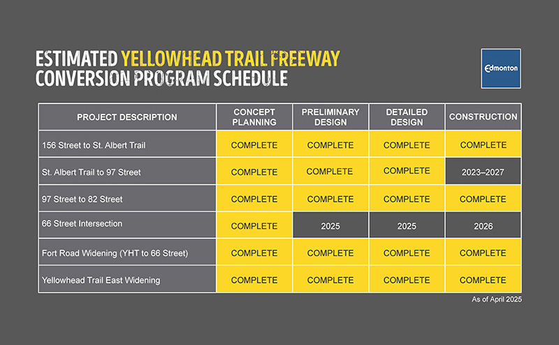 Yellowhead Trail as a freeway means the current traffic signals will be removed and road users will exit and enter Yellowhead Trail at the nearest interchange.