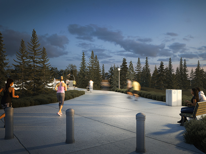 The City is waiting until the bridge is built before implementing any active transportation upgrades on the north side of the bridge beyond connections to the existing network and the new Stage One shared-use path. This will allow us to gain a better understanding of how users and residents experience the bridge and to better inform improvements that could potentially be implemented in the future.
