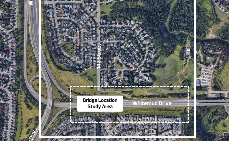 Three bridge alignment options were considered and provided to the public for input. The options provided included one west of 142 Street and two east of 142 Street. From public input and technical information, the preferred bridge location was determined to be a hybrid of the options, slightly west of 142 Street.