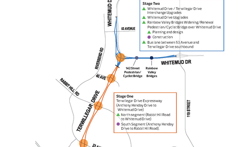 - Widening Terwillegar Drive/170 Street to six lanes (three in each direction), including new transit lanes.