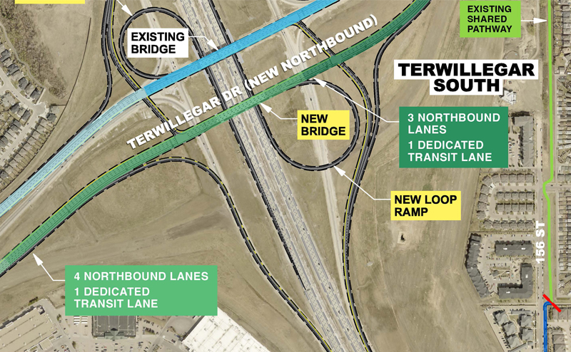 - Two new loop ramps connecting southbound Terwillegar Drive to eastbound Anthony Henday Drive and northbound Terwillegar Drive to westbound Anthony Henday Drive.