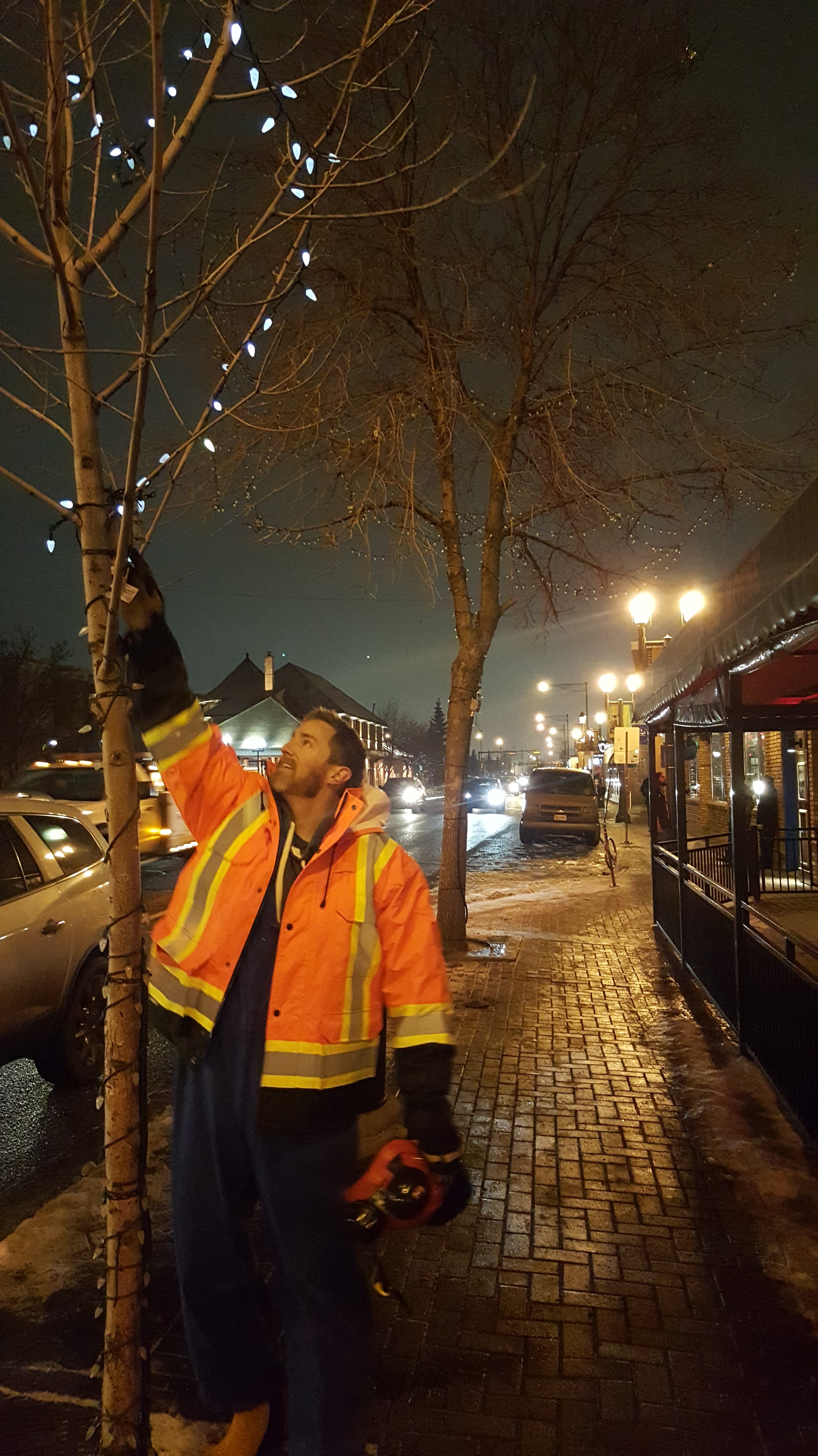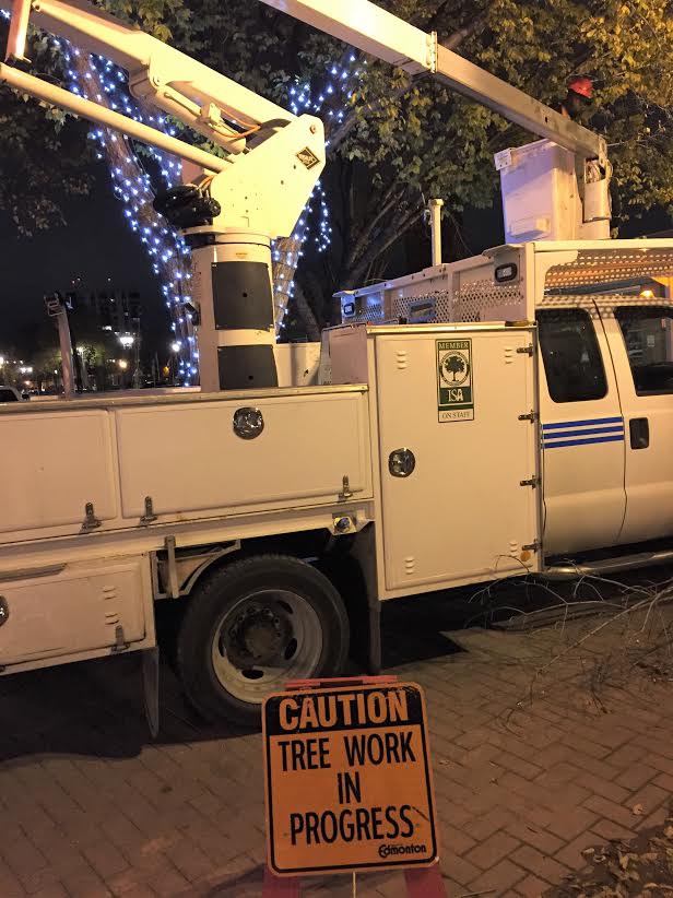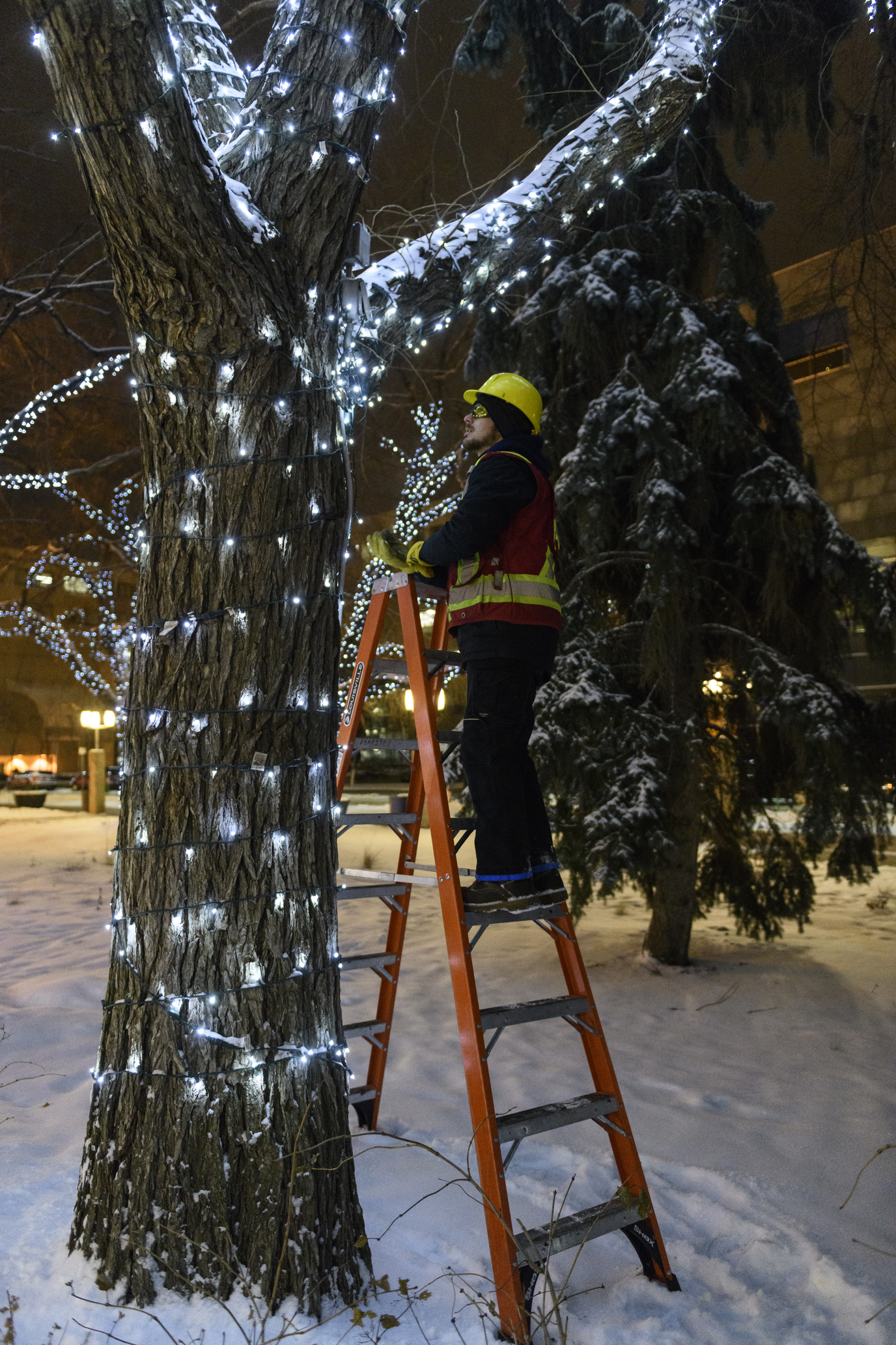 As part of its beautification initiatives, the City of Edmonton strings over 2,000 trees with sparkling white lights. These trees are primarily located in the Business Improvement Areas of the City, with a few other installations at locations such as City Hall, Giovanni Cabotto and Ezio Faraone Parks.