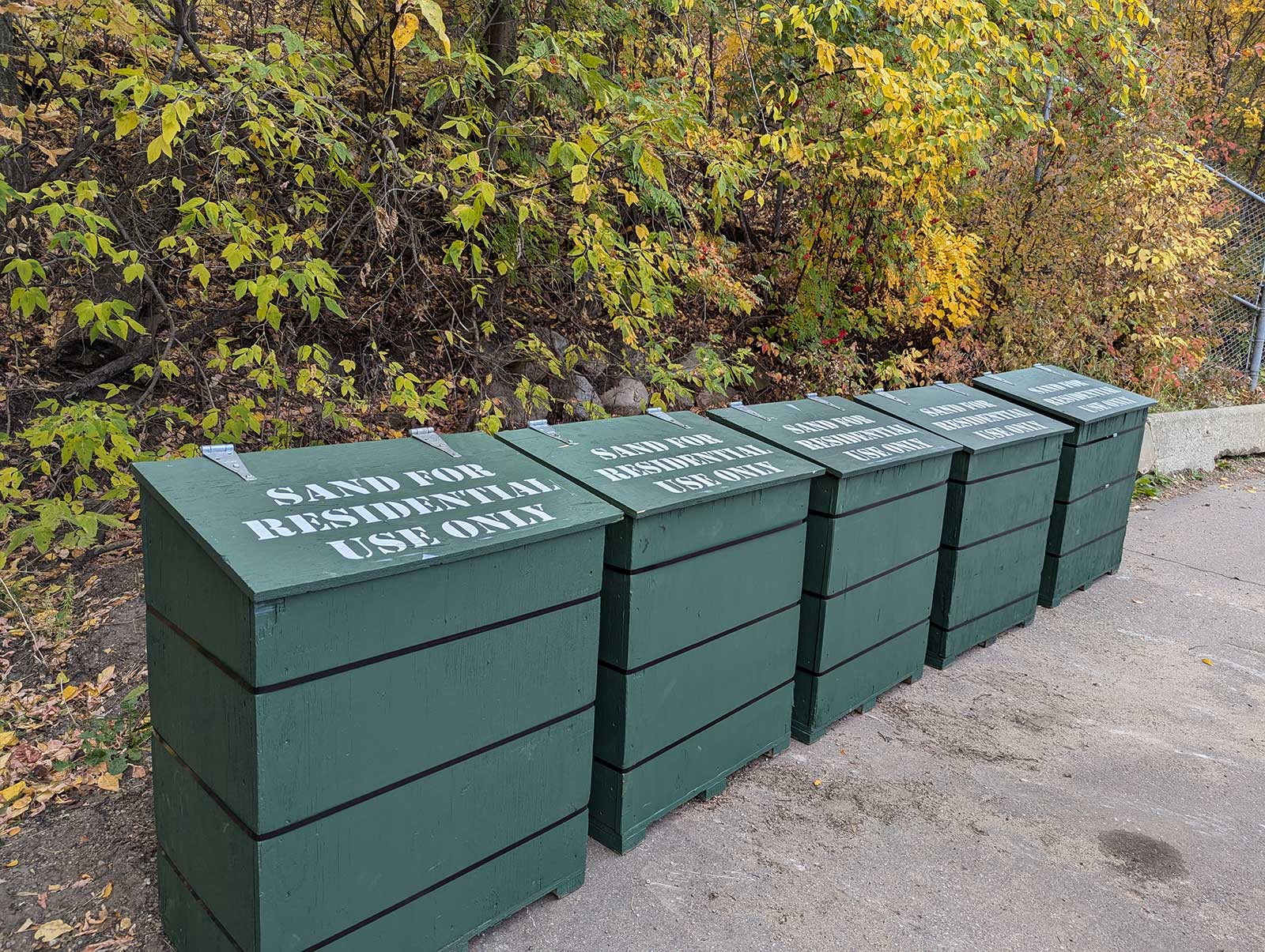 In October 2023, the City decided to reduce the number of public sandboxes to 100 locations for the 2024-2025 winter season. Sandboxes were redistributed throughout the city to ensure equitable access from residential areas. Additional large bin locations were added to provide more reliable access to sand.