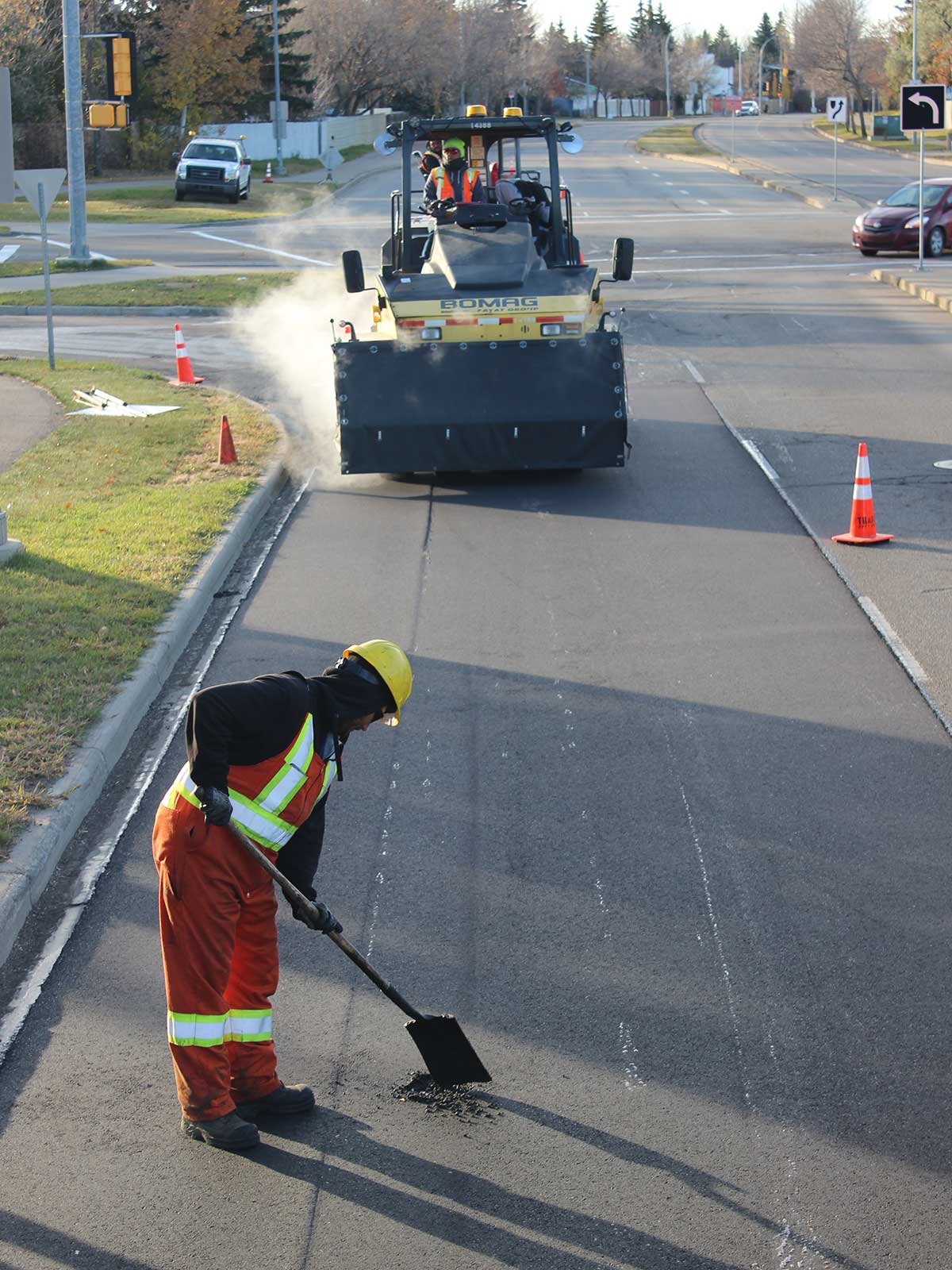 This process usually spans 3-5 days as crews replace the defective asphalt with new material using heavy equipment. 'No Parking' signs and Road Closures will be enforced. After paving is finished, normal driving and parking activities resume until the subsequent phase.